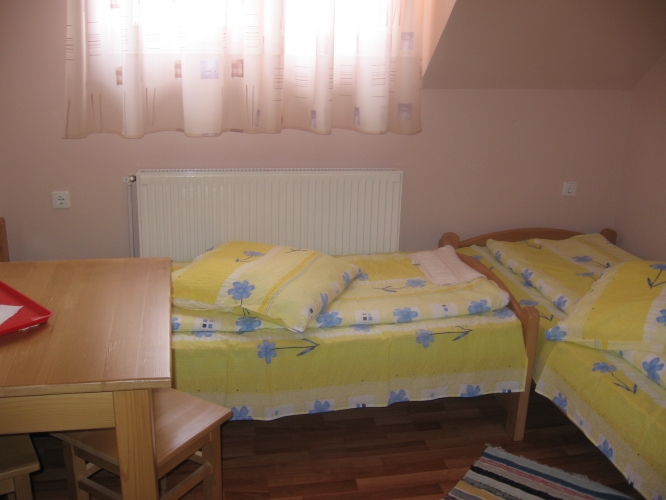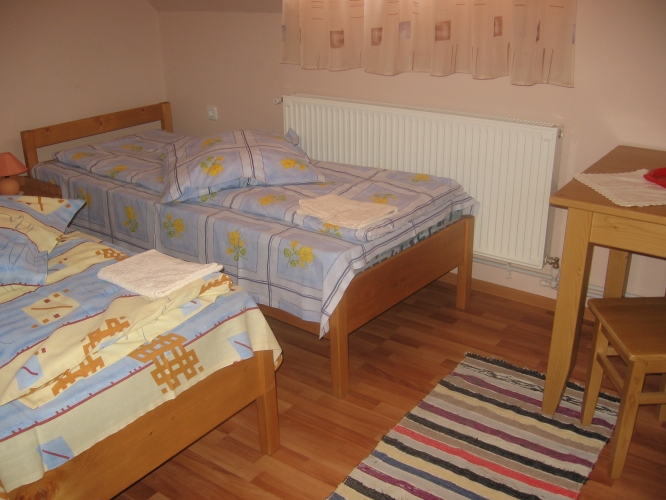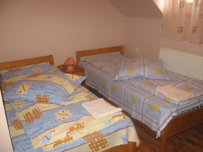 Vendégházunk 2 db 2 ágyas és 1 db 3 ágyas rendelkezik valamint két fűrdővel.
